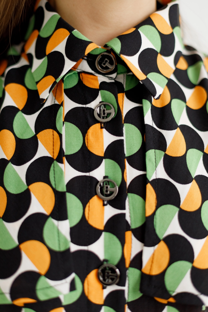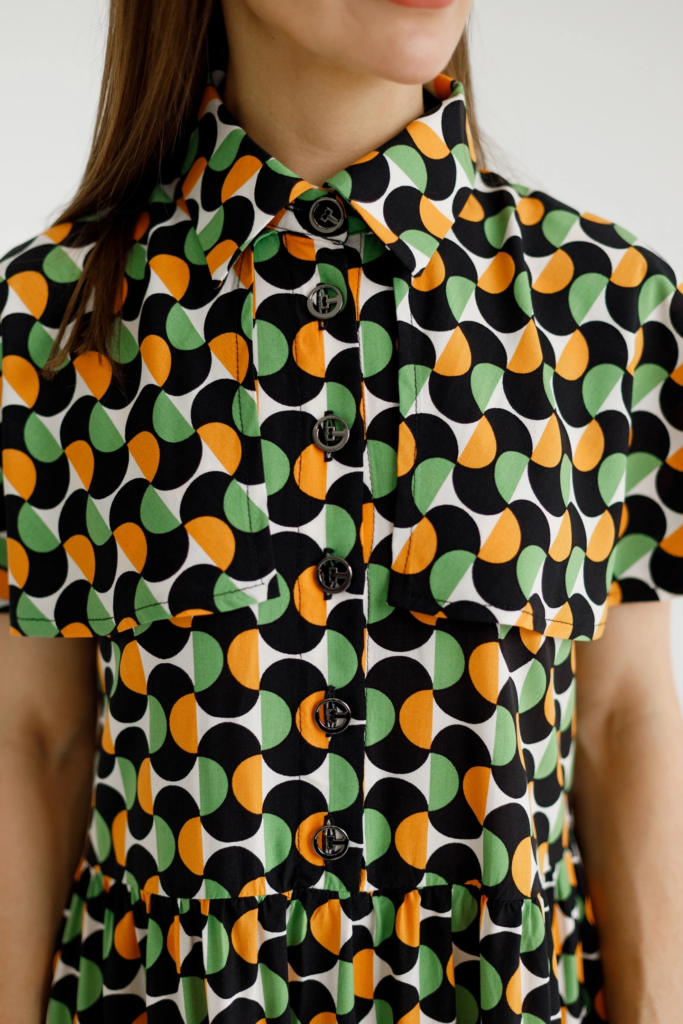 Платье на 6-ти пуговичках и они, как всегда, произведение искусства 😍 Воротник рубашечного типа. Не слишком жесткий, но держит форму. Платье отрезное по линии талии и ниже отреза свободное