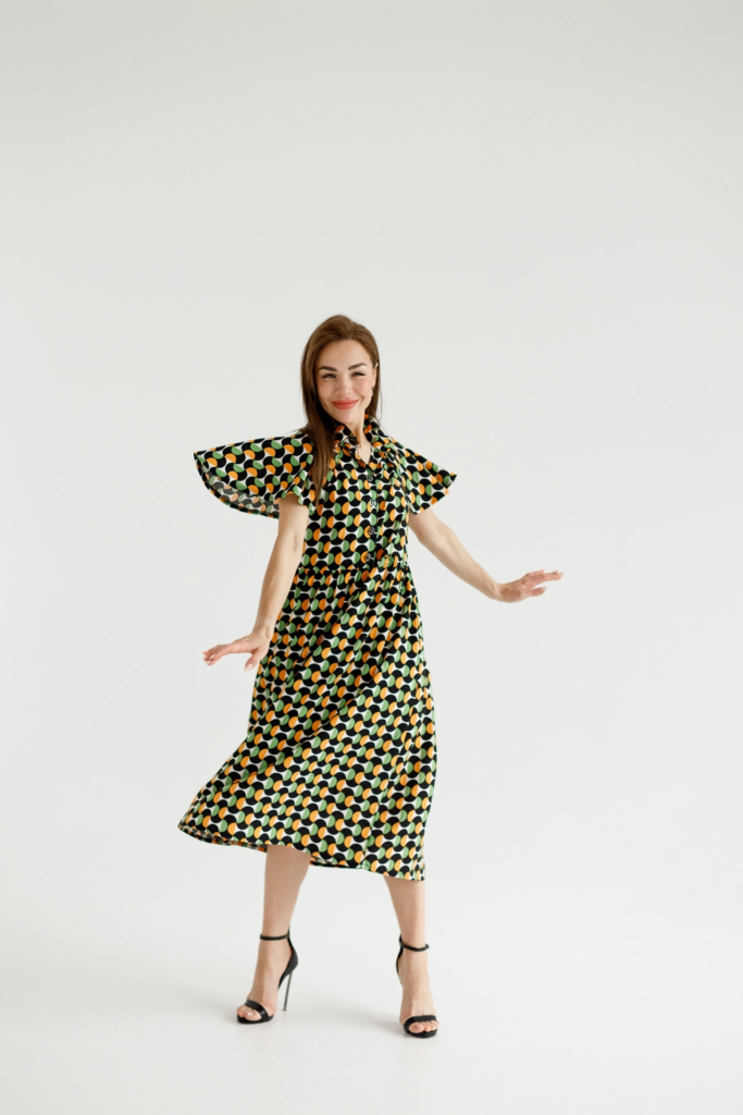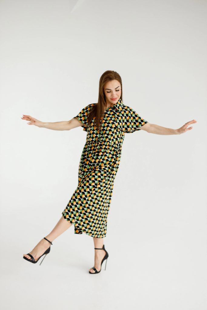 Платье «Сан-ремо» из 100% вискозы, что делает его летящим, приятно охлаждающим летом.
