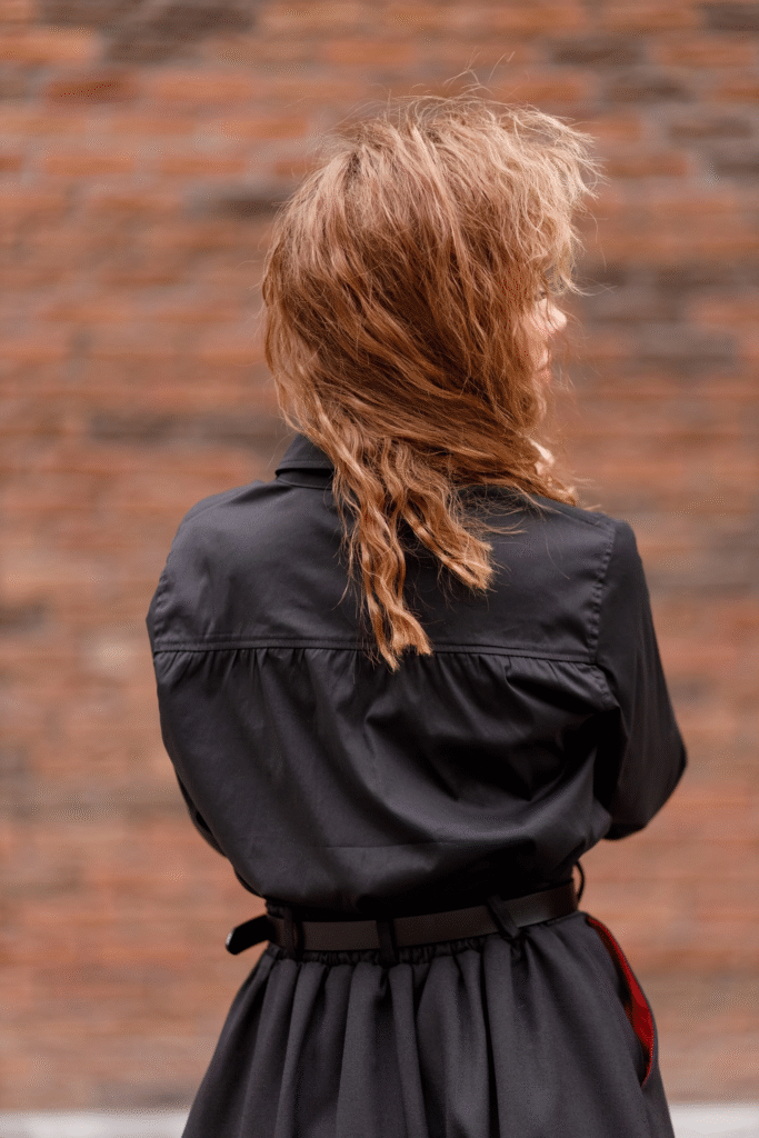 Главная изюминка — оригинальные разрезы на рукавах, добавляющие образу особый шарм.